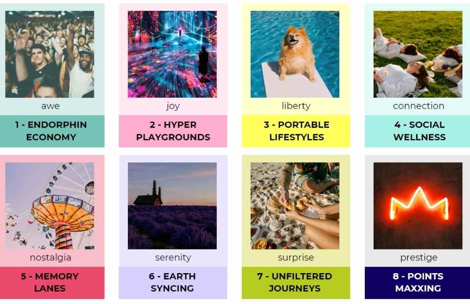 Hyper Playgrounds: La necesidad de escapar de la rutina hiper productiva impulsa la demanda de experiencias lúdicas e inmersivas. Más del 30% de los viajeros busca hoteles con diseños audaces y divertidos, mientras que el 43% se siente atraído por restaurantes conceptuales y performáticos.
