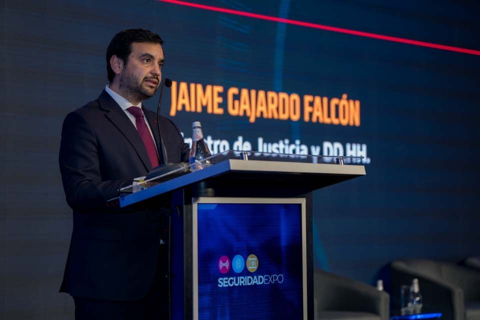 El jueves 2 de octubre, en el marco del segundo día de SeguridadExpo 2025, el ministro de Justicia y Derechos Humanos, Jaime Gajardo, llegó hasta el centro de convenciones Metropolitan Santiago acompañado por una delegación de Gendarmería de Chile, encabezada por su directora nacional (s).