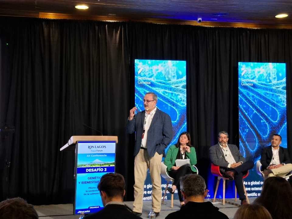 La nueva edición de la conferencia incluyó un segmento dedicado especialmente a temas de bienestar animal y genética. Allí, el Genetic Services Leader de Benchmark Genetics en Chile, Jean Paul Lhorente, dictó la charla “Mejoramiento genético en la salmonicultura chilena para una mejor sanidad”.