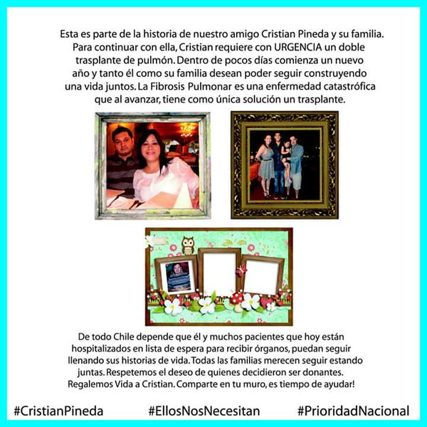 Cristian Pineda Venegas actualmente es prioridad nacional para un doble trasplante de pulmón. Ayudemos a Cristian. Respetar la voluntad de los donantes es el primer paso para dar vida.